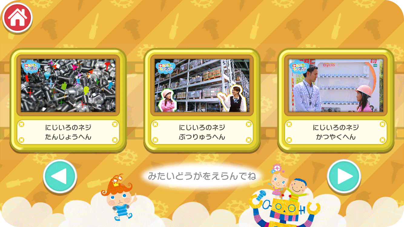 「ネジ」にスポットをあてた、優しく明るいストーリーの読み聞かせを楽しめるデジタル絵本です。アプリならではのたくさんの仕掛けが隠れているので、いろんなところを触ってみましょう。